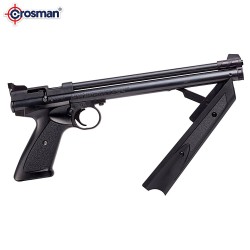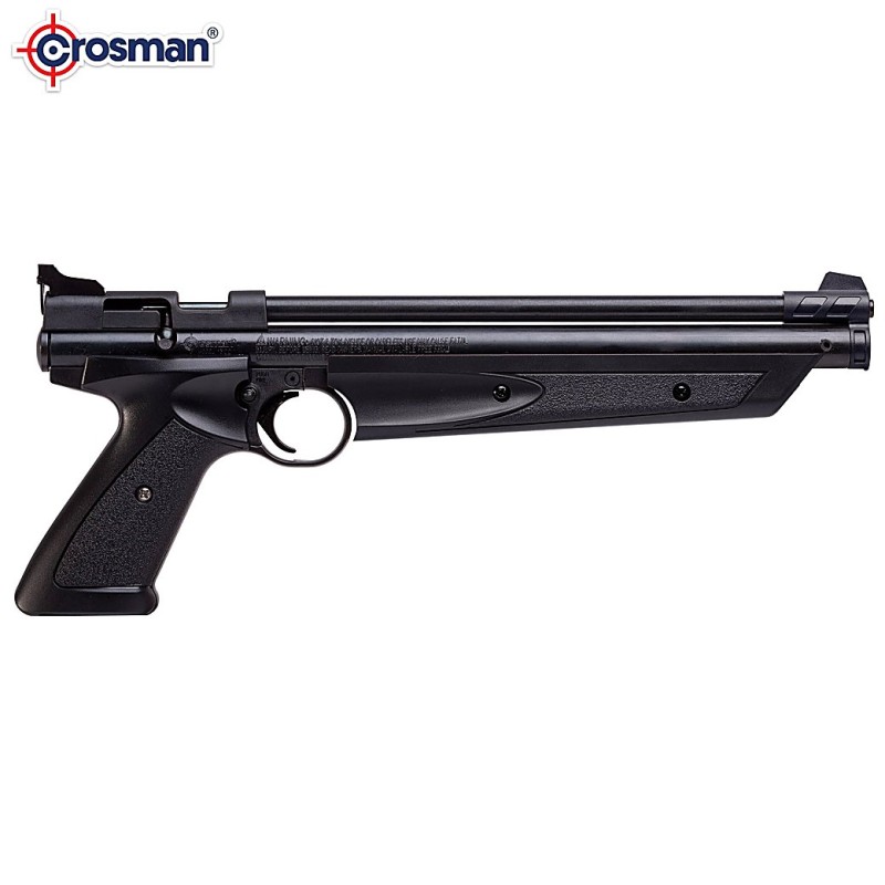 La Crosman American Classic es una pistola monotiro con sistema de carga manual mediante bombeo y capaz de alcanzar los 180 m/s de velocidad. Incorpora cañón de acero estriado, miras abiertas regulables y cuerpo de fibra de alto rendimiento. Incluye cerrojo de acción simple para carga rápida.