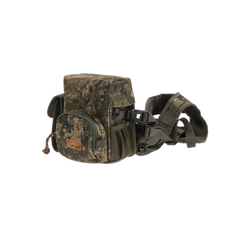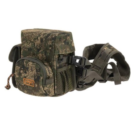 Fabricada en tejido impermeable y ultra silencioso con camuflaje, protege eficazmente tu óptica de la lluvia, polvo y golpes. La tapa con cierre magnético permite un acceso rápido y discreto a los prismáticos, mientras que las correas interiores ajustables los mantienen firmes en el interior.