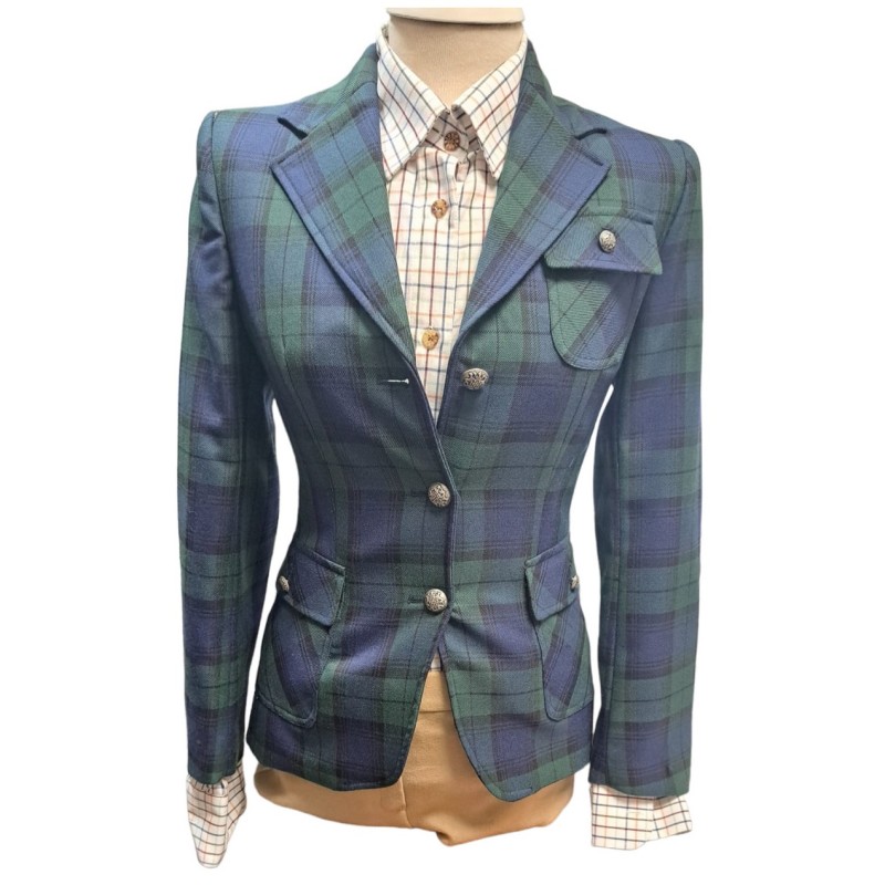 CHAQUETA SEÑORA ENTALLADA EN CUADROS AZUL MARINO Y VERDE