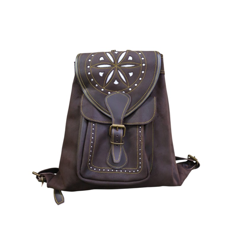 Presenta un llamativo dibujo labrado en su parte frontal.